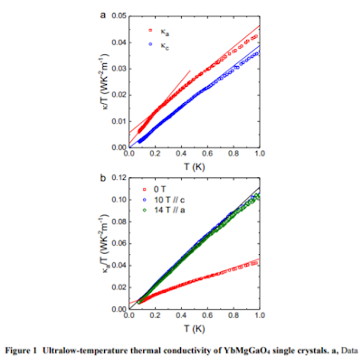 ・YbMgGaO4が有限残留熱伝導度を示すQSLの可能性、また論争がおきるかな。